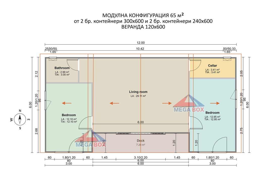Веранда: 120х600см (7,2 м2)