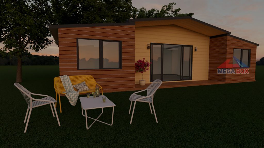 - Покрив: двускатен, покривен сандвич панел 40 мм/RAL 9002