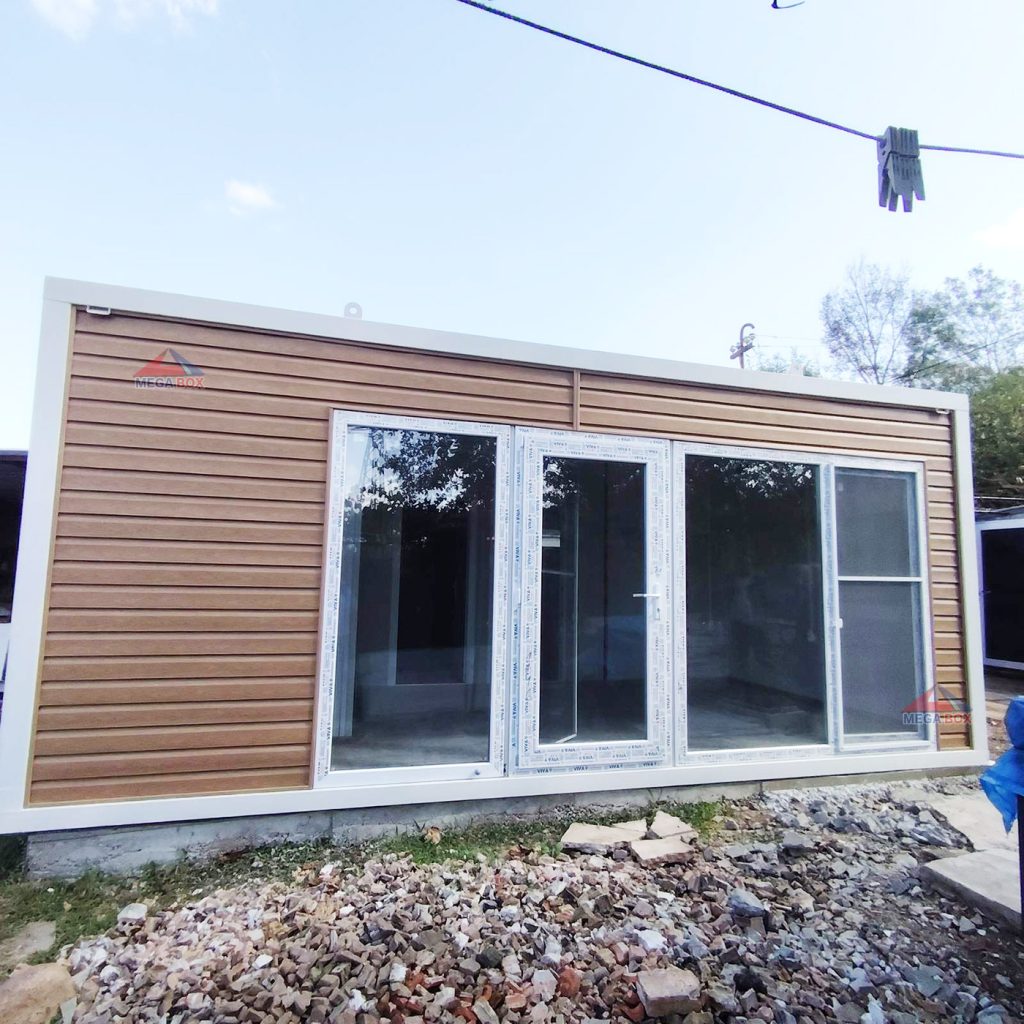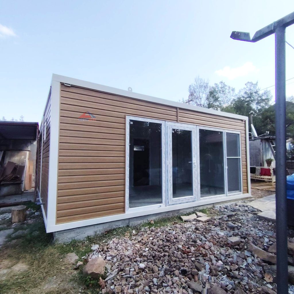 - Стени: сандвич панел 40мм / RAL-9002 + облицовка PVC сайдинг Алтайска ела