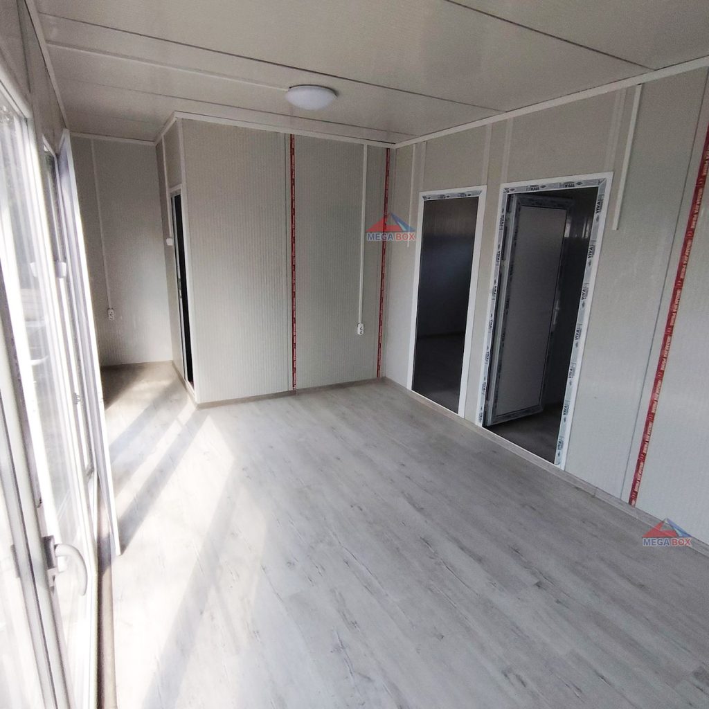 - Покрив: двускатен, покривен сандвич панел 40 мм/RAL 9002